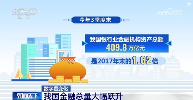 最新數(shù)據(jù)顯示,今年3季度末,我國銀行業(yè)金融機(jī)構(gòu)資產(chǎn)總額為409.8萬億元,是2017年末的1.62倍。銀行業(yè)金融機(jī)構(gòu)本外幣貸款余額239.5萬億元,是2017年末的1.91倍。本外幣存款余額286.6萬億元,是2017年末的1.69倍。保險方面,3季度末,保險公司總資產(chǎn)29.6萬億元,是2017年末的1.77倍。從2018年到今年3季度末,保險公司賠款與給付累計支出8.4萬億元,保險的保障功能日益突出。