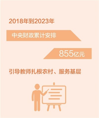 2018年到2023年 中央財政累計安排855億元引導教師扎根農村、服務基層