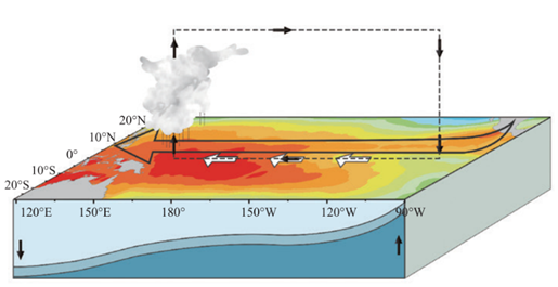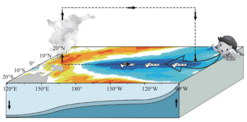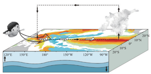 熱帶太平洋海洋大氣狀態(tài)示意圖(暖色系代表海溫偏暖,冷色系代表海溫偏冷,顏色越深,偏暖/冷的程度越大,圖片引自《中國(guó)氣候》,氣象出版社)