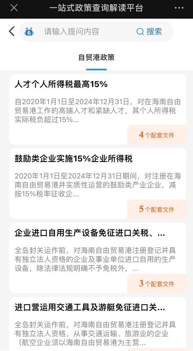 海南自由貿(mào)易港一站式政策查詢解讀平臺截圖。