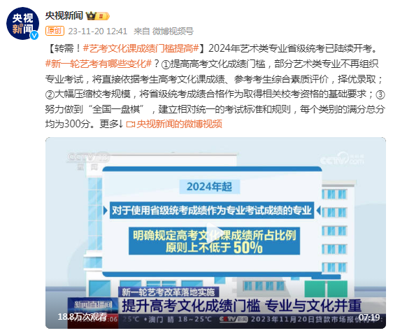 新一輪藝考有哪些變化?文化課成績(jī)門檻提高