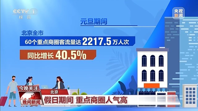 最新數(shù)據(jù)顯示,元旦期間,北京全市60個重點(diǎn)商圈客流量達(dá)2217.5萬人次,同比增長40.5%。上海全市35個重點(diǎn)商圈的線下客流總量達(dá)到1548萬人次,外來消費(fèi)發(fā)生消費(fèi)金額為65億元,次數(shù)高達(dá)705.4萬人次。