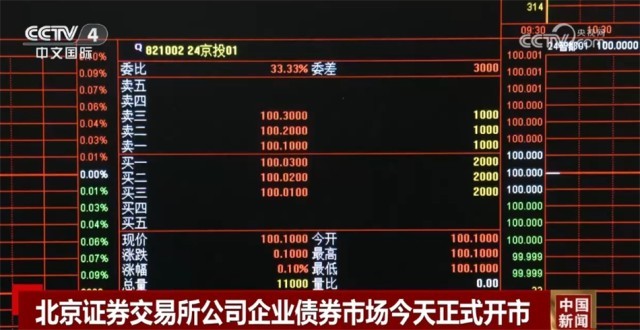 央視網(wǎng)消息:1月15日上午,北京證券交易所公司企業(yè)債券市場(chǎng)正式開(kāi)市。開(kāi)市首日,北交所公司企業(yè)債券市場(chǎng)上市3只企業(yè)債券,債券發(fā)行規(guī)模合計(jì)24.8億元。