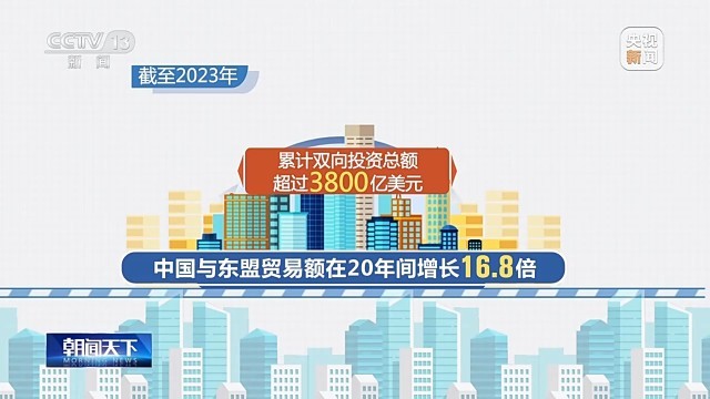 截至2023年,中國與東盟貿易額在20年間增長16.8倍,累計雙向投資總額超過3800億美元。
