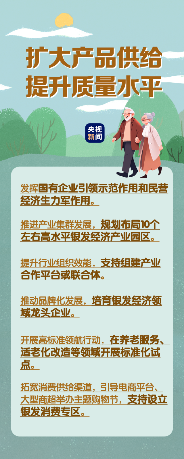 在民生事業(yè)方面,國(guó)家將擴(kuò)大和發(fā)展七方面的服務(wù),包括養(yǎng)老助餐、居家助老、社區(qū)便民、老年健康、養(yǎng)老照護(hù)、老年文體、農(nóng)村養(yǎng)老等方面的服務(wù)。國(guó)務(wù)院辦公廳印發(fā)《關(guān)于發(fā)展銀發(fā)經(jīng)濟(jì)增進(jìn)老年人福祉的意見(jiàn)》中提出了4個(gè)方面舉措,小編根據(jù)文件內(nèi)容進(jìn)行了簡(jiǎn)要梳理,一圖了解“銀發(fā)經(jīng)濟(jì)”核心要點(diǎn)。↓↓↓