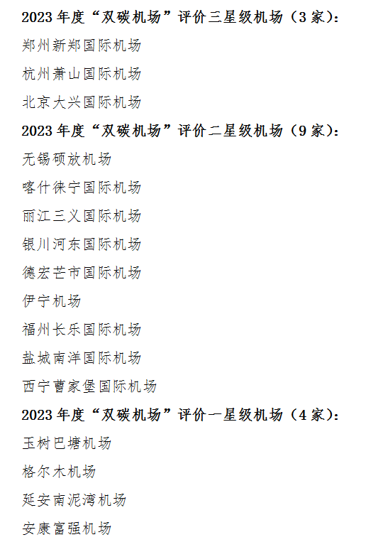 2023年度“雙碳機場”評價結(jié)果。(圖片由中國民用機場協(xié)會提供)