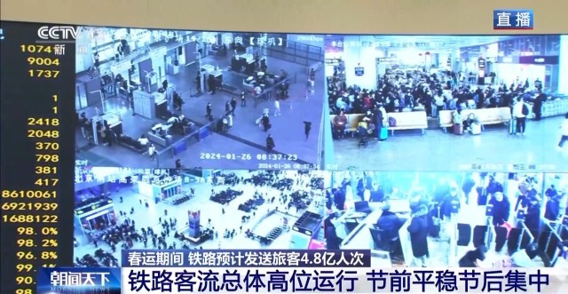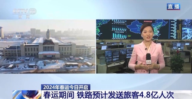 總臺央視記者 陳晰:40天春運,全國鐵路預(yù)計發(fā)送旅客4.8億人次,日均1200萬人次。今天是春運首日,全國鐵路預(yù)計發(fā)送旅客1060萬人次。2024年春運的火車票預(yù)售已經(jīng)從1月12日開始發(fā)售,從目前的售票情況來看,旅客出行需求旺盛。
