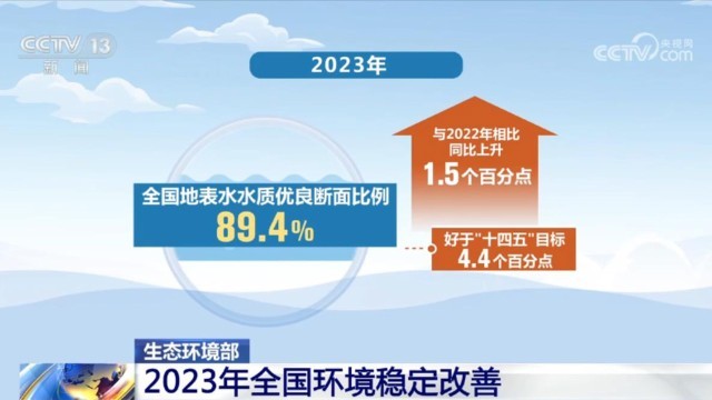 據(jù)生態(tài)環(huán)境部,2023年全國地表水水質(zhì)優(yōu)良斷面比例為89.4%,與2022年相比上升了1.5個(gè)百分點(diǎn);長江、黃河干流全線水質(zhì)穩(wěn)定保持在二類;全國地下水一類至四類水質(zhì)點(diǎn)位比例為77.8%,同比上升0.2個(gè)百分點(diǎn);全國近岸海域優(yōu)良海水水質(zhì)面積比例為85%,同比上升3.1個(gè)百分點(diǎn)。