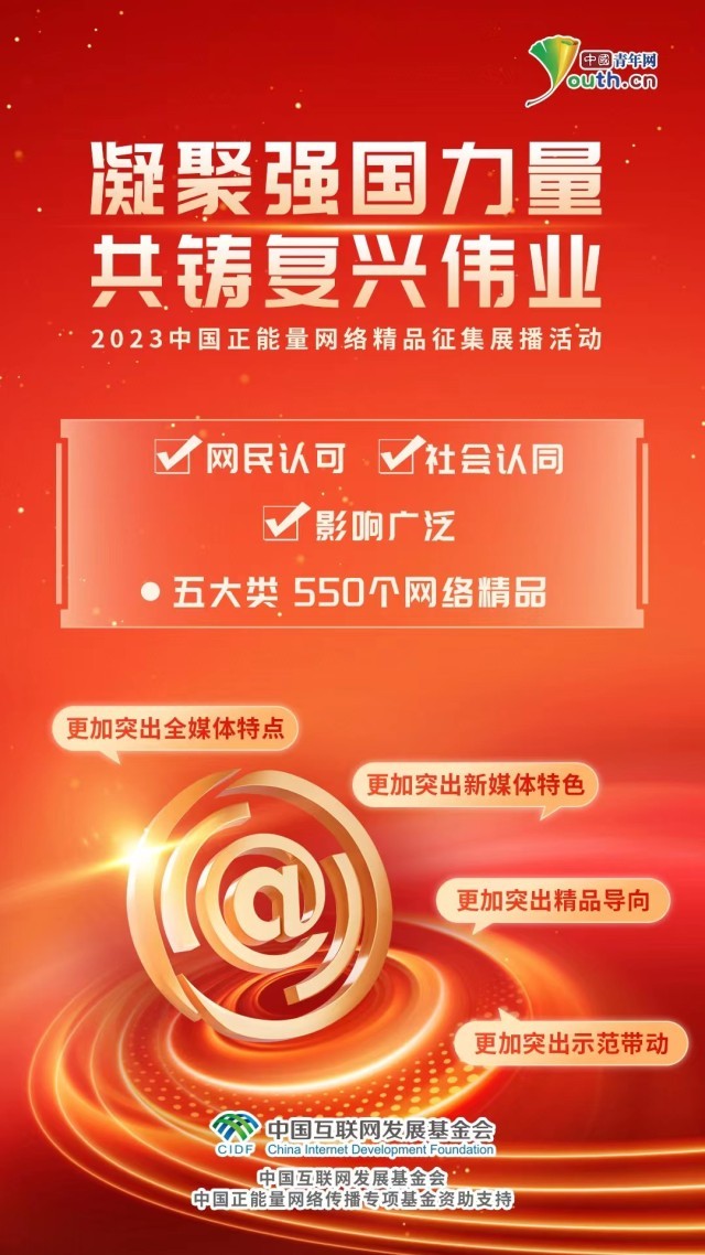 中國青年網(wǎng)北京2月27日電(記者 劉尚君)凝聚強(qiáng)國力量,共鑄復(fù)興偉業(yè)。由中央網(wǎng)信辦主辦的2023中國正能量網(wǎng)絡(luò)精品征集展播活動今天正式啟動網(wǎng)絡(luò)展播投票。經(jīng)過初選,1100件作品從征集報(bào)送作品中脫穎而出入圍終選。據(jù)悉,今年的活動將通過初選、網(wǎng)絡(luò)投票、終選等環(huán)節(jié),最終選出五大類、550個(gè)網(wǎng)絡(luò)精品。
