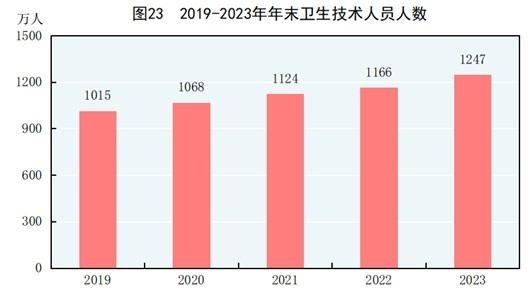 年末全國共有醫(yī)療衛(wèi)生機構107.1萬個,其中醫(yī)院3.9萬個,在醫(yī)院中有公立醫(yī)院1.2萬個,民營醫(yī)院2.7萬個;基層醫(yī)療衛(wèi)生機構101.6萬個,其中鄉(xiāng)鎮(zhèn)衛(wèi)生院3.4萬個,社區(qū)衛(wèi)生服務中心(站)3.7萬個,門診部(所)36.2萬個,村衛(wèi)生室58.3萬個;專業(yè)公共衛(wèi)生機構1.2萬個,其中疾病預防控制中心3426個,衛(wèi)生監(jiān)督所(中心)2791個。衛(wèi)生技術人員1247萬人,其中執(zhí)業(yè)醫(yī)師和執(zhí)業(yè)助理醫(yī)師478萬人,注冊護士563萬人。醫(yī)療衛(wèi)生機構床位1020萬張,其中醫(yī)院800萬張,鄉(xiāng)鎮(zhèn)衛(wèi)生院151萬張。全年總診療人次95.6億人次,出院人次3.0億人次。