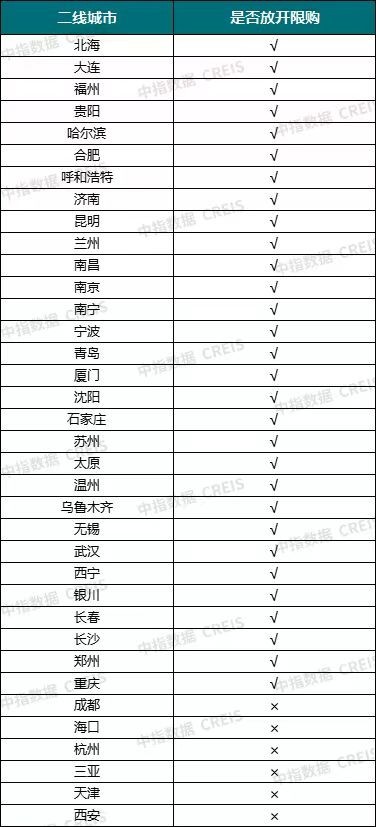 據(jù)中指研究院監(jiān)測數(shù)據(jù),截至目前,核心二線城市中,僅成都、??凇⒑贾?、三亞、天津、西安保留部分限購政策。