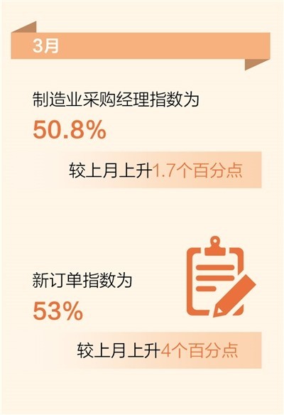 3月制造業(yè)采購經理指數為50.8%