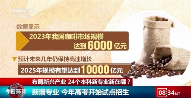 那么,這些新專業(yè)到底會(huì)講授什么內(nèi)容呢?總臺(tái)記者在云南農(nóng)業(yè)大學(xué)采訪時(shí)發(fā)現(xiàn),新增設(shè)的咖啡科學(xué)與工程專業(yè)今年計(jì)劃招收60名學(xué)生。2023年,我國(guó)咖啡市場(chǎng)規(guī)模達(dá)到6000億元,預(yù)計(jì)到2025年,規(guī)模有望達(dá)到10000億元。而與此同時(shí),在幾大招聘網(wǎng)站上,咖啡培訓(xùn)師、咖啡師主管等崗位仍有大量空缺。