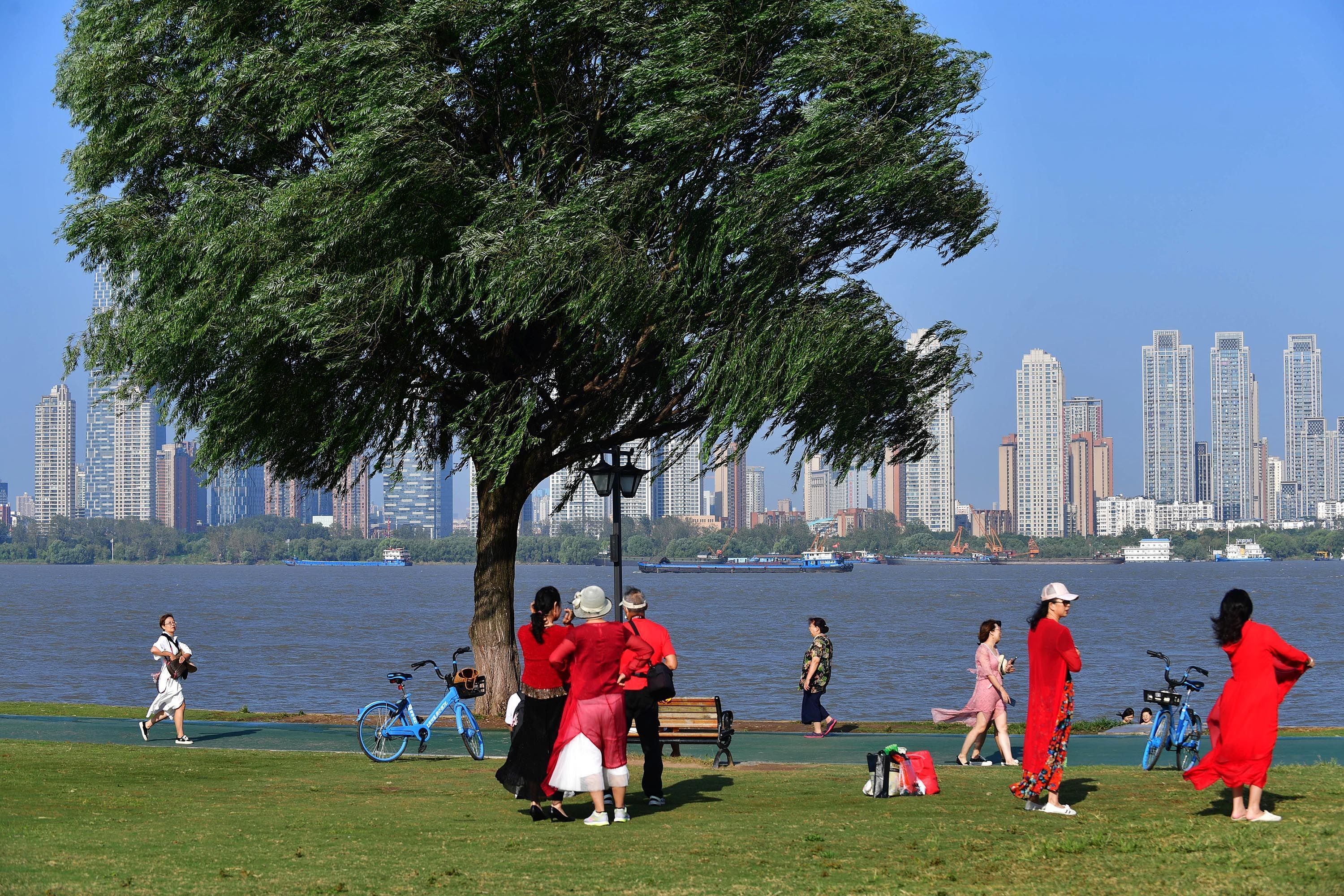 自1998年以來,武漢市持續(xù)實施“兩江四岸”江灘防洪及環(huán)境綜合整治工程。截至目前,建成長79.65公里、面積831公頃、綠地面積527公頃的江灘公園。