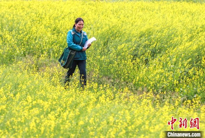 圖為朱正琴投送郵件途中?!∧ス鹳e 攝
