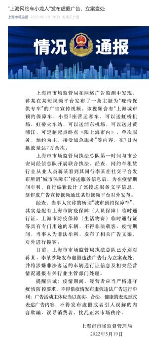 “上海網(wǎng)約車小龍人”發(fā)布虛假廣告,被立案查處