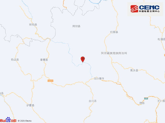 四川阿壩州馬爾康市發(fā)生5.2級(jí)地震 震源深度15千米