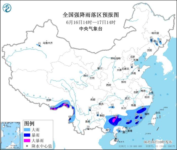 中新網(wǎng)6月16日電 據(jù)中央氣象臺(tái)網(wǎng)站消息,中央氣象臺(tái)6月16日10時(shí)繼續(xù)發(fā)布暴雨藍(lán)色預(yù)警:預(yù)計(jì),6月16日14時(shí)至17日14時(shí),福建、江西南部、湖南南部、廣東大部、廣西中東部以及云南西北部、西藏東南部等地的部分地區(qū)有大到暴雨,局地大暴雨(100~160毫米)。上述部分地區(qū)伴有短時(shí)強(qiáng)降水(最大小時(shí)降雨量20~50毫米,局地可超過60毫米),局地有雷暴大風(fēng)等強(qiáng)對(duì)流天氣。