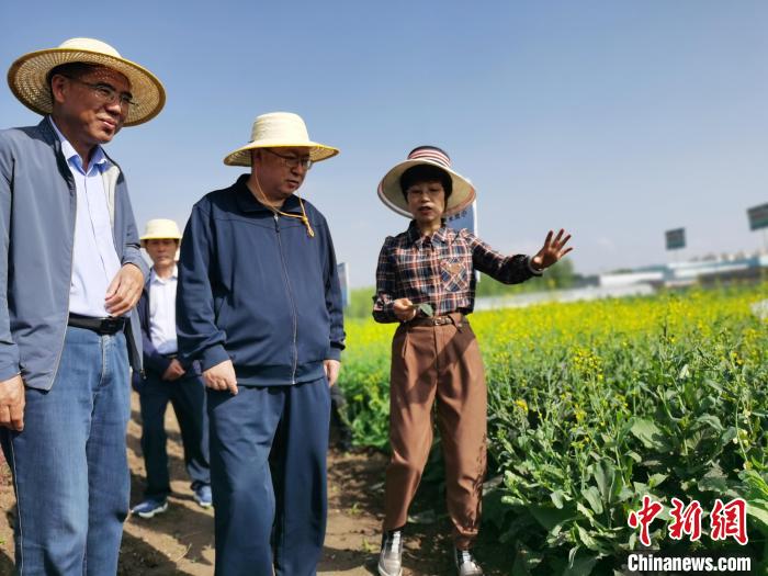 圖為青海省政協(xié)主席公保扎西(中)調(diào)研油菜種植?!?zhí)砀?攝