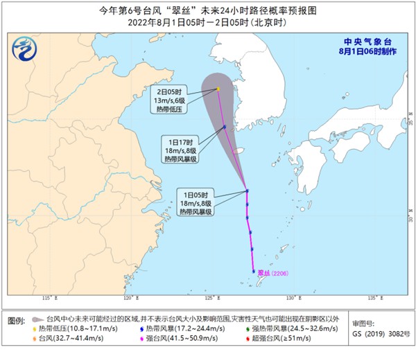 此外,今年第6號臺(tái)風(fēng)“翠絲”已于昨天下午生成,其中心今天早晨05時(shí)位于韓國濟(jì)州島南偏東方向約250公里的東海北部海面上,預(yù)計(jì)將以每小時(shí)30-35公里的速度向北偏西方向移動(dòng),強(qiáng)度逐漸減弱并消散。