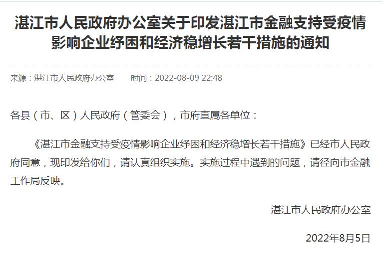中新網(wǎng)8月10日電 廣東省湛江市人民政府網(wǎng)站9日發(fā)布《關(guān)于印發(fā)湛江市金融支持受疫情影響企業(yè)紓困和經(jīng)濟穩(wěn)增長若干措施的通知》,提及促進房地產(chǎn)市場平穩(wěn)健康發(fā)展金融服務等方面的措施。