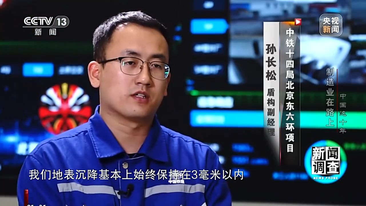 孫長松 中鐵十四局北京東六環(huán)項目盾構(gòu)副經(jīng)理:我們盾構(gòu)機開挖直徑是16米07,我們地表沉降基本上始終保持在3毫米以內(nèi)。