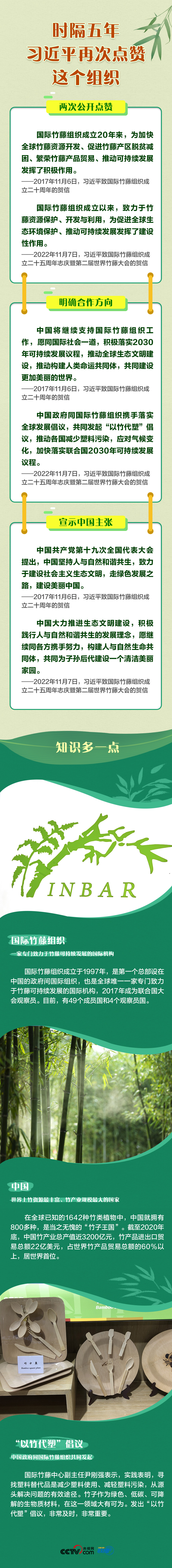 這是習(xí)近平主席第二次向這個(gè)政府間國際組織致賀信。2017年11月,他首次致信國際竹藤組織,祝賀該組織成立二十周年,表示“中國將繼續(xù)支持國際竹藤組織工作”。兩封信,蘊(yùn)含著習(xí)近平主席對生態(tài)文明建設(shè)的深刻思考,表達(dá)了他對構(gòu)建人與自然生命共同體的殷切希望。央視網(wǎng)《聯(lián)播+》特推出長圖,與您一起學(xué)習(xí)。