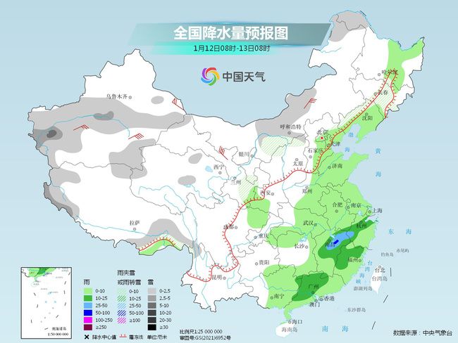 明天,隨著補(bǔ)充弱冷空氣南下,暖濕氣流增強(qiáng),我國(guó)中東部雨雪天氣將增多,其中黑龍江西北部、新疆北部和西部山區(qū)、西藏西部、陜西北部、山西中北部等地部分地區(qū)有小到中雪或雨夾雪,其中,新疆沿天山地區(qū)、西藏西部等地局地有大到暴雪。江漢南部、江南大部、西南地區(qū)東部、華南等地部分地區(qū)有小到中雨,局地有大雨。