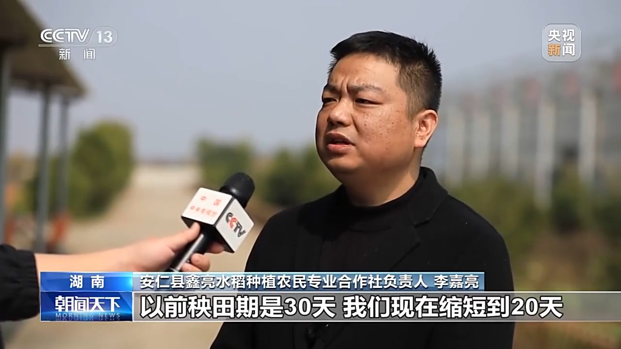 湖南省安仁縣鑫亮水稻種植農(nóng)民專(zhuān)業(yè)合作社負(fù)責(zé)人 李嘉亮:以前秧田期是30天,我們現(xiàn)在縮短到20天,可以為周邊的農(nóng)戶(hù)提供2.5萬(wàn)畝到3萬(wàn)畝的秧苗。