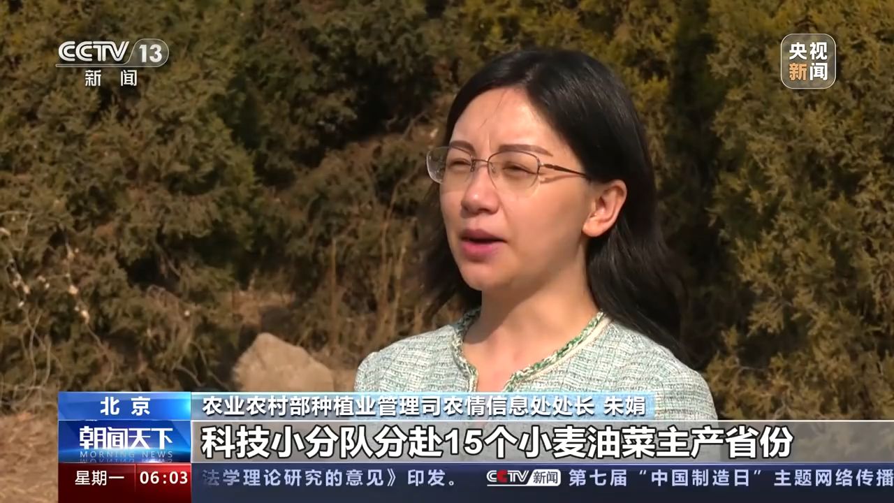 農(nóng)業(yè)農(nóng)村部種植業(yè)管理司農(nóng)情信息處處長(zhǎng) 朱娟:科技小分隊(duì)分赴15個(gè)小麥油菜主產(chǎn)省份,包片蹲點(diǎn),指導(dǎo)落實(shí)以“控旺促弱、抗旱防凍、防病治蟲(chóng)”為重點(diǎn)的春季田管關(guān)鍵措施,全力以赴打贏夏糧豐收第一仗。(央視新聞客戶(hù)端)