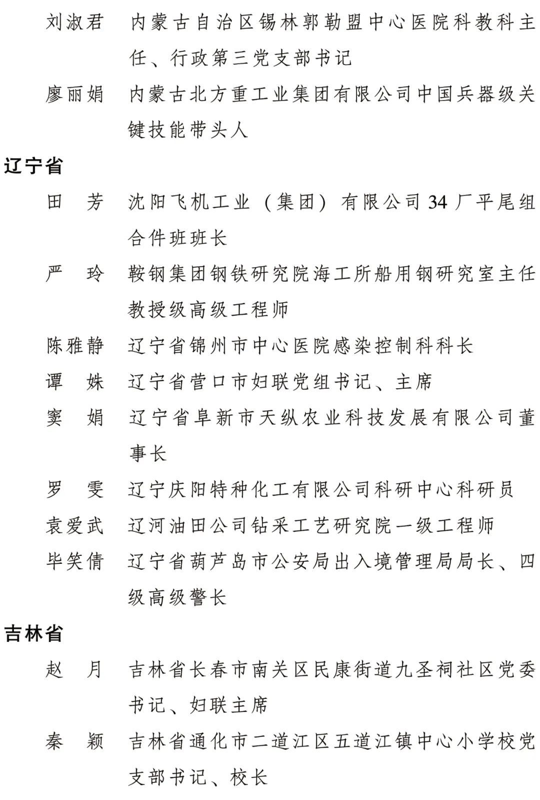 全國(guó)三八紅旗手標(biāo)兵名單