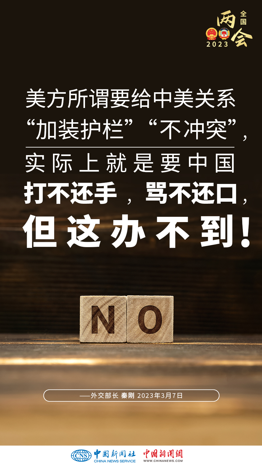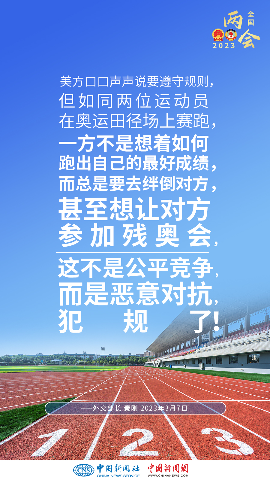 秦剛:美方聲稱要“競(jìng)贏”中國(guó)但不尋求沖突。但實(shí)際上,美方的所謂“競(jìng)爭(zhēng)”,就是全方位遏制打壓,就是你死我活的零和博弈。美方口口聲聲說(shuō)要遵守規(guī)則,但如同兩位運(yùn)動(dòng)員在奧運(yùn)田徑場(chǎng)上賽跑,一方不是想著如何跑出自己的最好成績(jī),而總是要去絆倒對(duì)方,甚至想讓對(duì)方參加殘奧會(huì),這不是公平競(jìng)爭(zhēng),而是惡意對(duì)抗,犯規(guī)了!美方所謂要給中美關(guān)系“加裝護(hù)欄”“不沖突”,實(shí)際上就是要中國(guó)打不還手,罵不還口,但這辦不到!