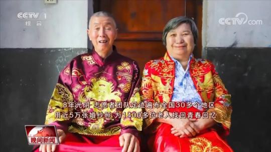 央視網(wǎng)消息:在湖北武漢工程科技學院,有一支師生自發(fā)組織的志愿者團隊,名為“圓夢計劃”。8年來,這些年輕人走遍全國30多個地區(qū),用近5萬張婚紗照,為1400多位老人找回了曾經(jīng)的青春回憶,也記錄下了滄桑歲月后最美的愛情圖景。