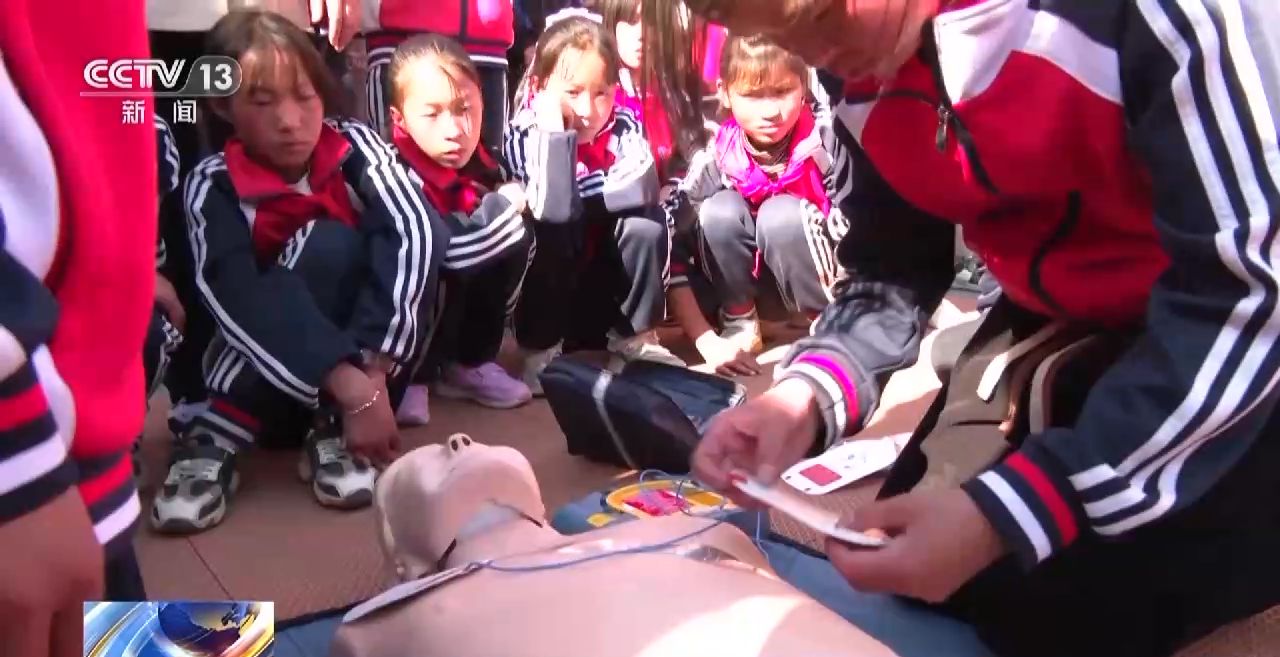 在云南省昭通市魯?shù)榭h鵲落小學(xué),一場(chǎng)“紅氣球校園挑戰(zhàn)賽”將趣味運(yùn)動(dòng)會(huì)和急救知識(shí)答題與實(shí)際操作相結(jié)合。操場(chǎng)上,同學(xué)們?cè)诰o張有趣的比賽中不僅得到了運(yùn)動(dòng)鍛煉,還在紅十字會(huì)專業(yè)救護(hù)人員的指導(dǎo)下,體驗(yàn)海姆立克急救法、心肺復(fù)蘇以及AED(自動(dòng)體外除顫儀)的使用方法,學(xué)習(xí)創(chuàng)傷包扎等急救知識(shí)和技能。