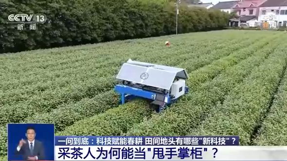農(nóng)業(yè)科技的運用打開了種田人的新空間,我們再去采茶園看看。眼下,正是春茶采摘旺季,各地的茶農(nóng)都在忙著采摘茶芽。不過您知道嗎?現(xiàn)在采茶人也能當(dāng)“甩手掌柜”了。為了幫助茶農(nóng)提產(chǎn)增收,當(dāng)?shù)芈?lián)合高校機(jī)器人團(tuán)隊,經(jīng)過不斷嘗試、改進(jìn),研發(fā)出了自主識別茶樹芽葉的智能采茶機(jī)器人。跟隨記者的鏡頭,一起去浙江杭州的茶園里看看。