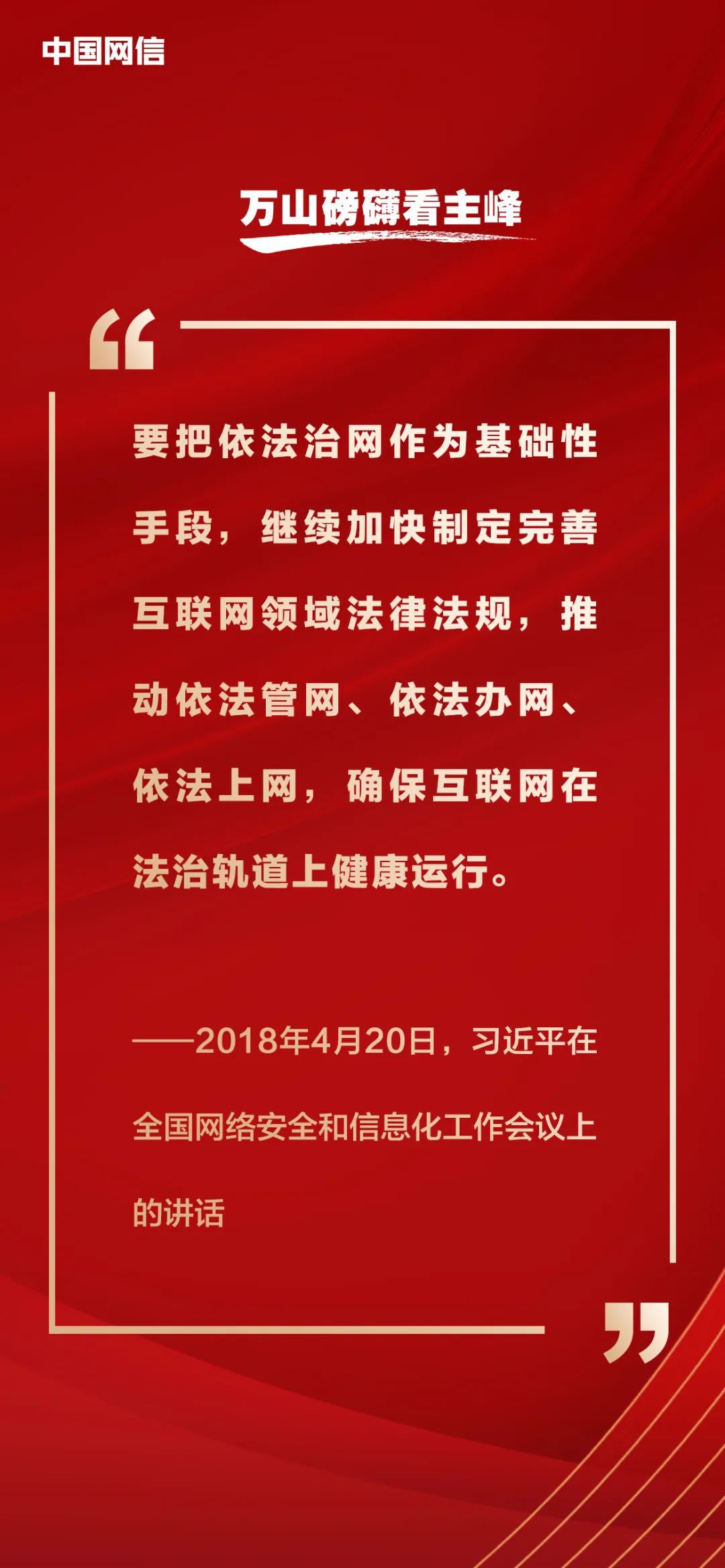 2018年4月20日至21日,全國(guó)網(wǎng)絡(luò)安全和信息化工作會(huì)議召開,習(xí)近平總書記出席會(huì)議并發(fā)表重要講話,為加快推進(jìn)網(wǎng)絡(luò)強(qiáng)國(guó)建設(shè)指明了前進(jìn)方向、提供了根本遵循?!吨袊?guó)網(wǎng)信》雜志梳理相關(guān)重要論述,與你一起回顧學(xué)習(xí)。