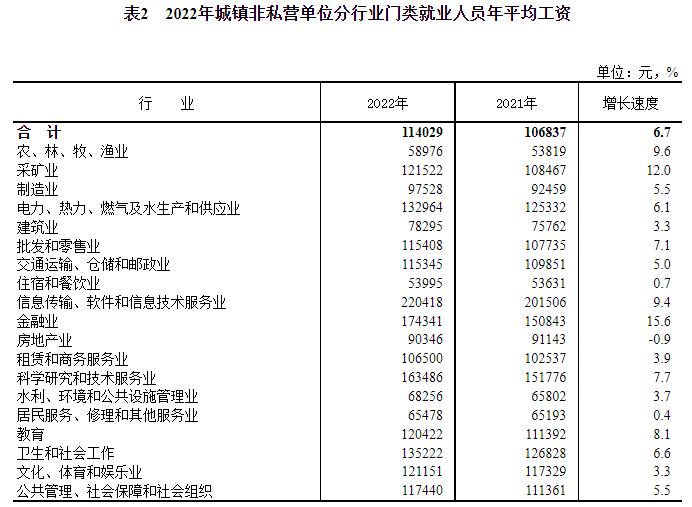 數(shù)據(jù)顯示,城鎮(zhèn)非私營單位中,金融業(yè)年平均工資達到174341元,增長15.6%。城鎮(zhèn)私營單位中,金融業(yè)年平均工資達到110304元,同樣增長15.6%。