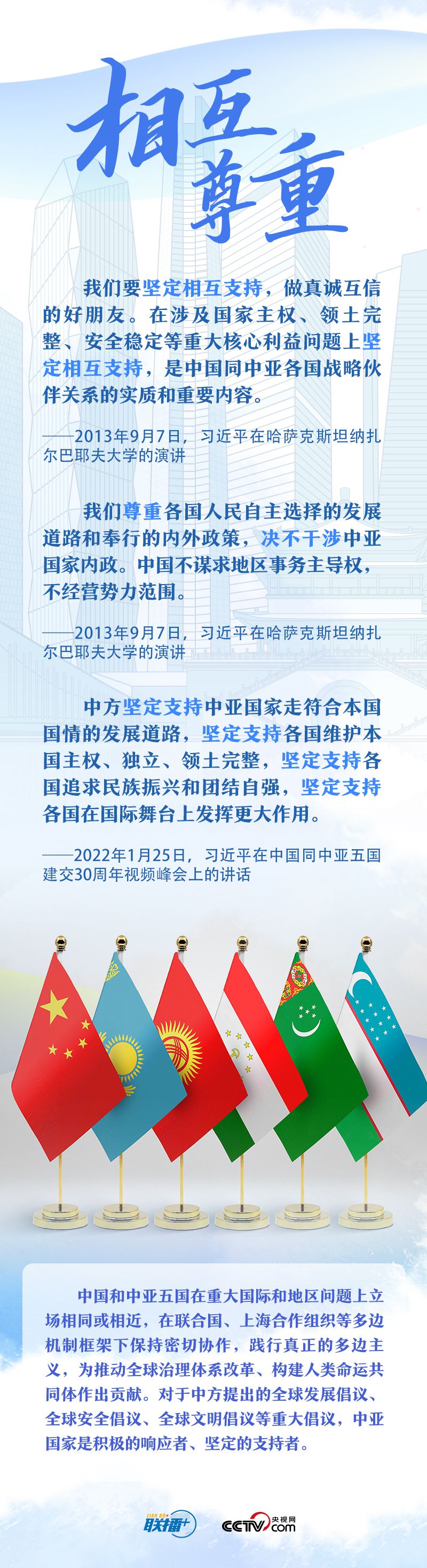 習(xí)主席把中國(guó)同中亞五國(guó)合作的成功密碼總結(jié)為“相互尊重、睦鄰友好、同舟共濟(jì)、互利共贏”。他強(qiáng)調(diào),這四項(xiàng)原則是在合作中積累的寶貴經(jīng)驗(yàn)和共同財(cái)富,是中國(guó)同中亞國(guó)家關(guān)系行穩(wěn)致遠(yuǎn)的政治保障,也是中國(guó)同中亞國(guó)家友好交往繼往開(kāi)來(lái)的力量源泉。央視網(wǎng)《聯(lián)播+》與您一起學(xué)習(xí)。