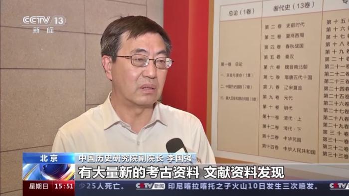 中國歷史研究院副院長 李國強:那么距離今天我們前一部通史已經(jīng)過去20多年,在20多年的時間里邊,有大量新的考古資料、文獻(xiàn)資料發(fā)現(xiàn),那么需要以新的史料、新的理論、新的方法來觀察中國歷史?!?新編)中國通史》跨時代跨度非常長,一直從史前時期,寫到黨的二十大,這樣一個時間跨度,在過去的通史編纂當(dāng)中是前所未有的。同時我們《(新編)中國通史》也采取了斷代史與專門史相結(jié)合的這樣一個全新體例,這在以往也是前所未有的。