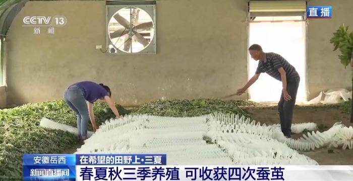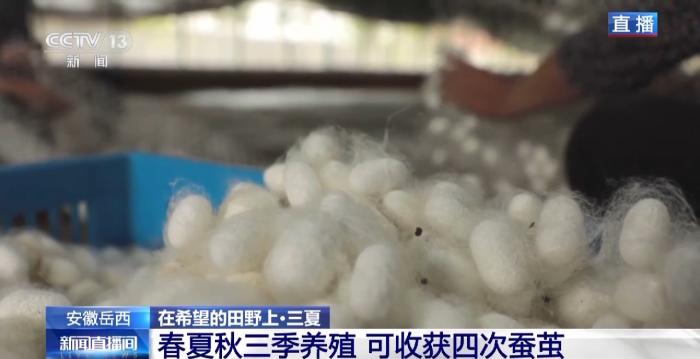 當前這些即將結繭的熟蠶,其實是今年飼養(yǎng)的第二批了,在岳西縣目前形成了一年中,春、夏、秋三季養(yǎng)殖,分四批收獲的養(yǎng)殖模式。