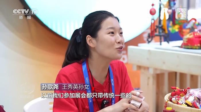 王秀英孫女孫歌堯:不僅在外觀上,技術(shù)上也要?jiǎng)?chuàng)新。我們把3D打板加明暗敲針,我們有6項(xiàng)計(jì)算機(jī)軟件著作權(quán),運(yùn)用到香包上面可以提高30%到50%的生產(chǎn)效率。以前我們參加展會(huì)都只帶傳統(tǒng)一些的,這一次是帶我創(chuàng)新的品牌來(lái)參展。