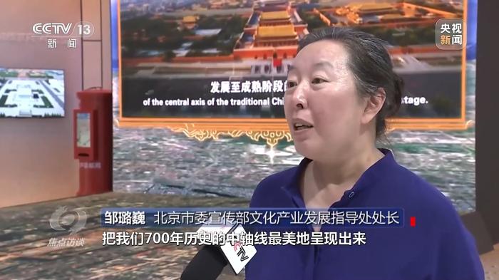 北京市委宣傳部文化產(chǎn)業(yè)發(fā)展指導(dǎo)處處長(zhǎng)鄒璐?。哼\(yùn)用了衛(wèi)星遙感、裸眼3D相關(guān)技術(shù),把我們700年歷史的中軸線最美地呈現(xiàn)出來(lái)。