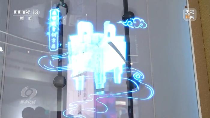在AI繪畫一旁,國(guó)家級(jí)保護(hù)文物司母戊大方鼎、青銅縱目面具、四羊方尊、越王勾踐劍、曾侯乙編鐘等正以數(shù)字化形式呈現(xiàn)在觀眾面前。參展商通過(guò)數(shù)字孿生技術(shù)復(fù)現(xiàn)或重構(gòu)文物和文化遺產(chǎn)的數(shù)字鏡像,從而實(shí)現(xiàn)文物和文化遺產(chǎn)的保護(hù)、修復(fù)直至永久性保存和活態(tài)化傳承。觀眾既可以看到部分真實(shí)的復(fù)制文物和文化遺產(chǎn),又可以體驗(yàn)虛擬的數(shù)字文物和文化遺產(chǎn),虛實(shí)之間,體會(huì)數(shù)字化給傳統(tǒng)文物和文化遺產(chǎn)帶來(lái)的生命力。