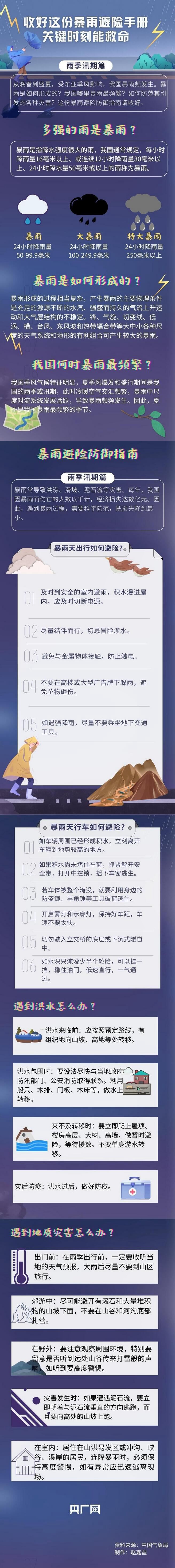 央廣網(wǎng)長春7月5日消息(記者郭東隅)正值汛期,我國多地遭遇今年以來最強降雨過程,出現(xiàn)暴雨、大暴雨甚至特大暴雨。那么,暴雨究竟是如何形成的?如何防范其引發(fā)的各種災害?這份暴雨避險防御指南請收好,關鍵時刻能救命。