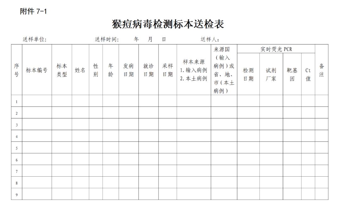 7-1猴痘病毒檢測標(biāo)本送檢表