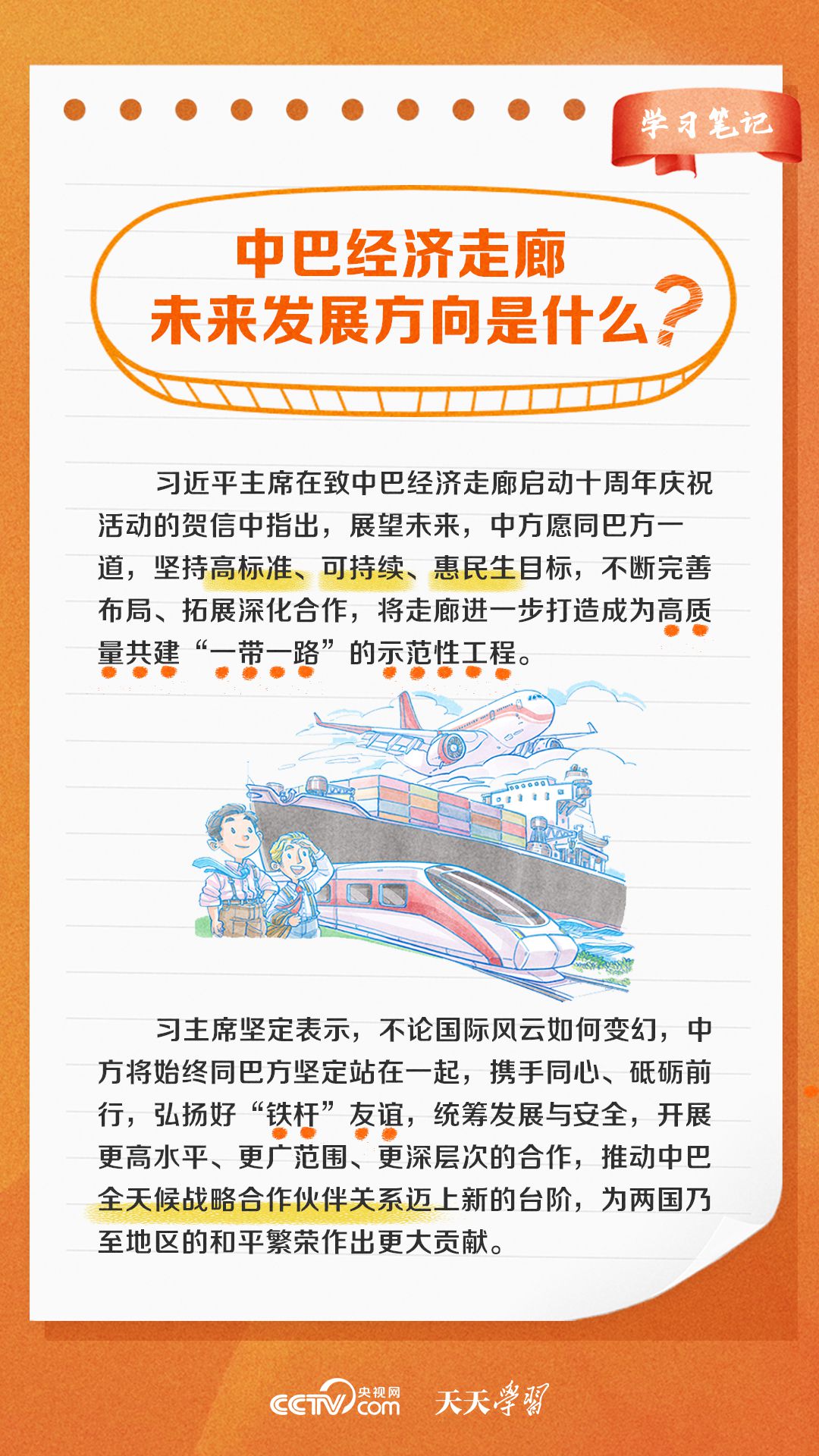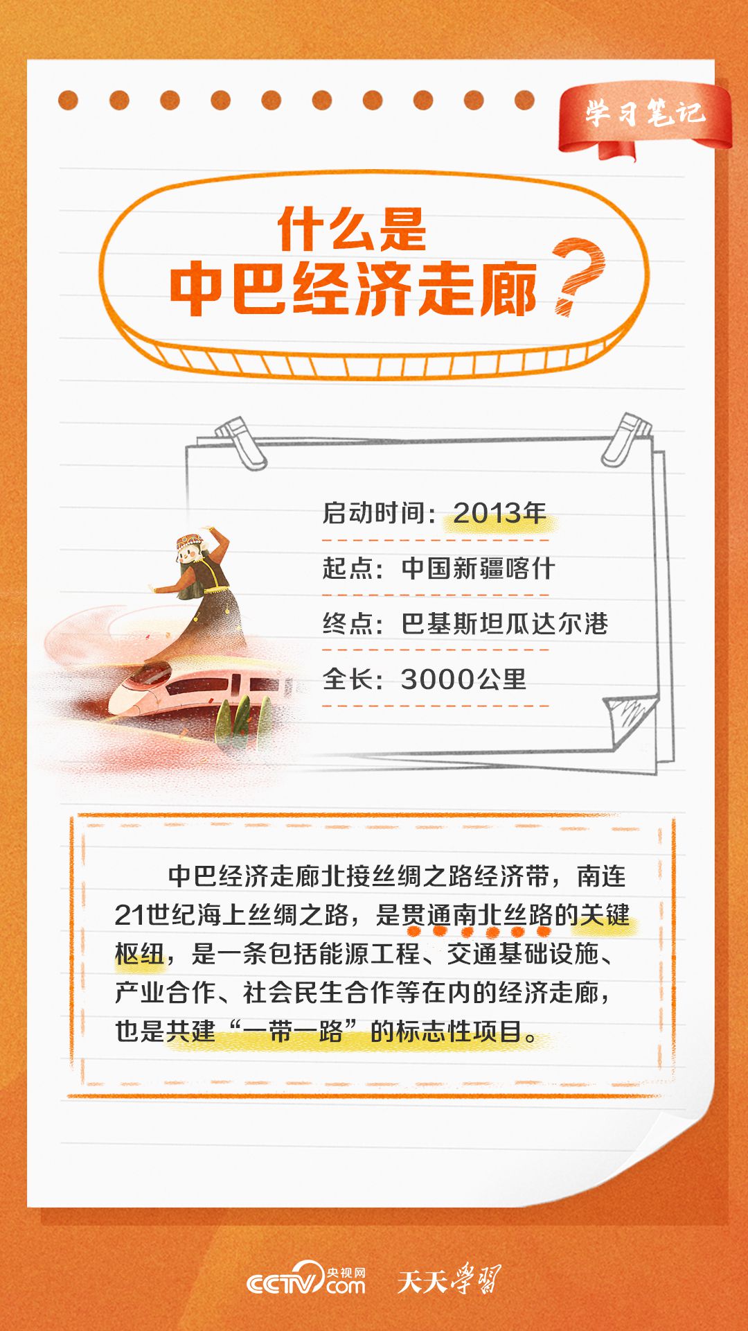 今年是習(xí)近平主席提出共建“一帶一路”倡議十周年,也是中巴經(jīng)濟(jì)走廊啟動(dòng)十周年。經(jīng)過(guò)十年的發(fā)展,中巴經(jīng)濟(jì)走廊已成為中巴友誼“新標(biāo)桿”。央視網(wǎng)《天天學(xué)習(xí)·學(xué)習(xí)筆記》特梳理中巴經(jīng)濟(jì)走廊相關(guān)知識(shí)點(diǎn),與您一起學(xué)習(xí)。