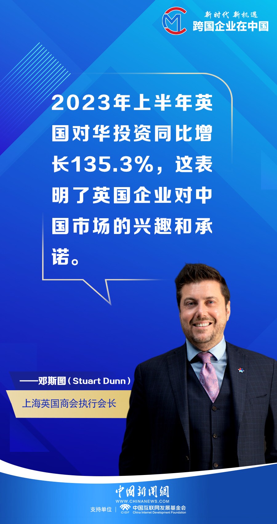 鄧斯圖表示,2023年上半年英國對(duì)華投資同比增長135.3%,這表明了英國企業(yè)對(duì)中國市場的興趣和承諾。