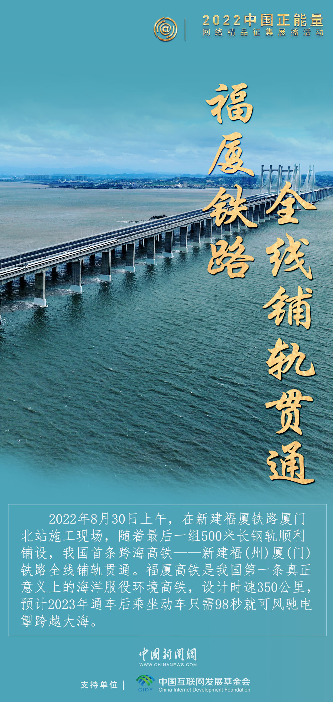2022年是我國交通建設(shè)碩果累累的一年,我國首條跨海高鐵——新建福(州)廈(門)鐵路全線鋪軌貫通,新疆和若鐵路通車運營,世界首條環(huán)沙漠鐵路線正式完成“最后一塊拼圖”,穿山越嶺、橫越大海,中國交通一路向前。