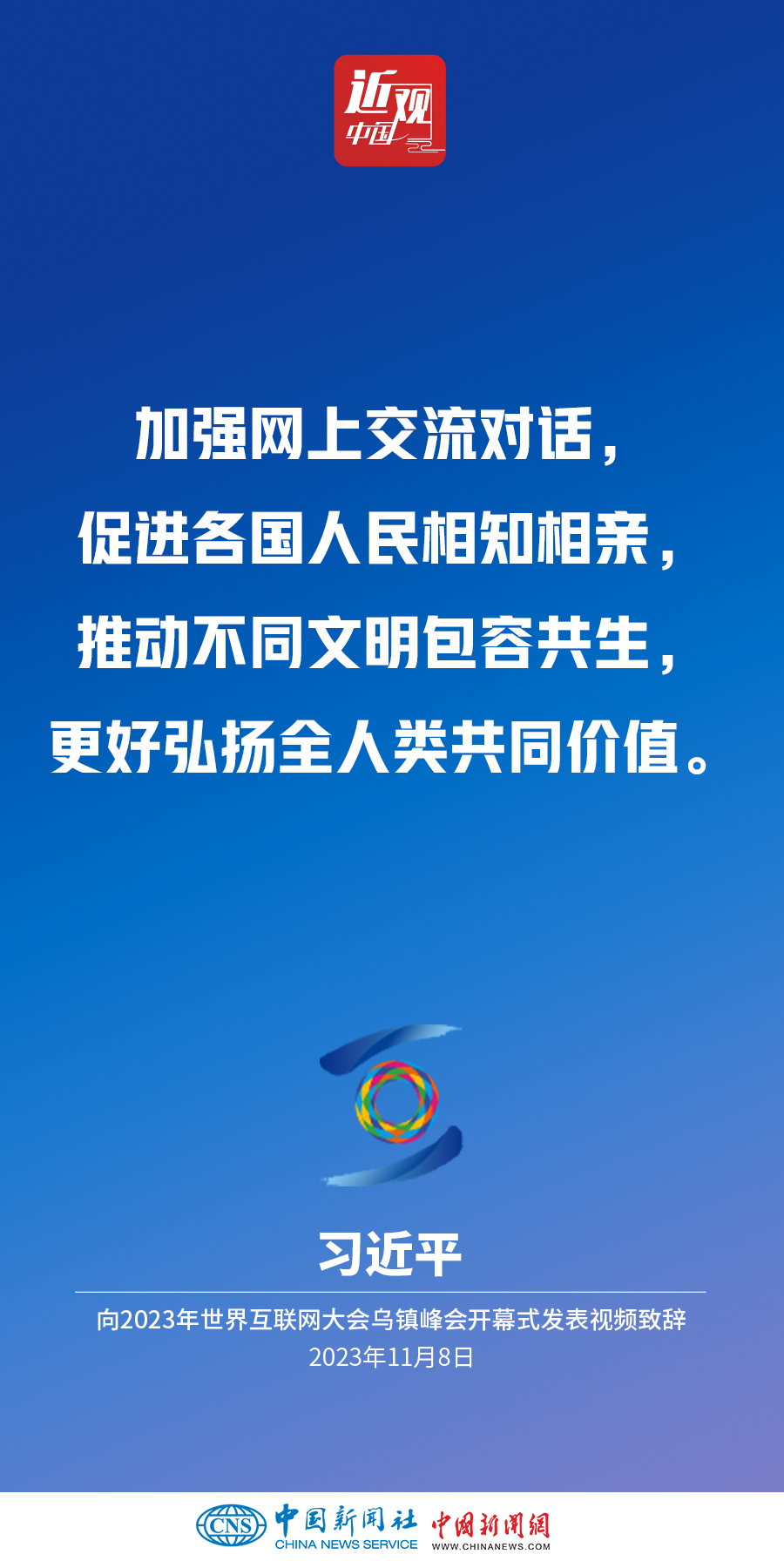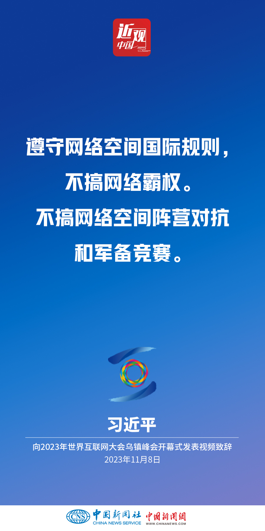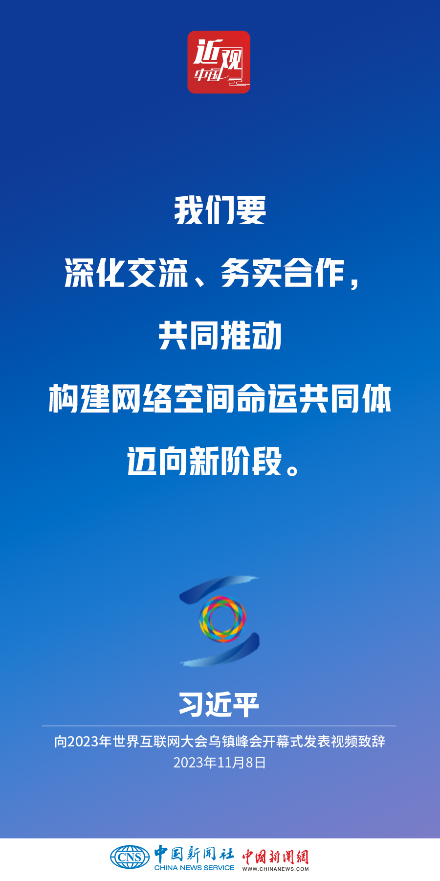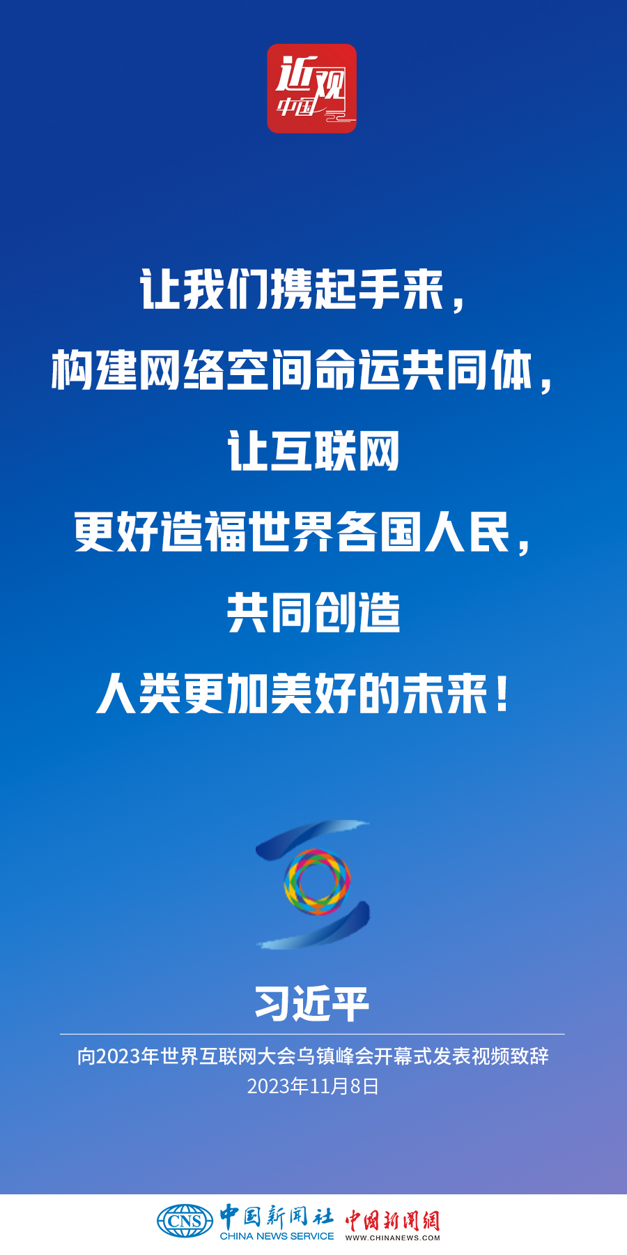 11月8日上午,國(guó)家主席習(xí)近平向2023年世界互聯(lián)網(wǎng)大會(huì)烏鎮(zhèn)峰會(huì)開幕式發(fā)表視頻致辭。他指出——