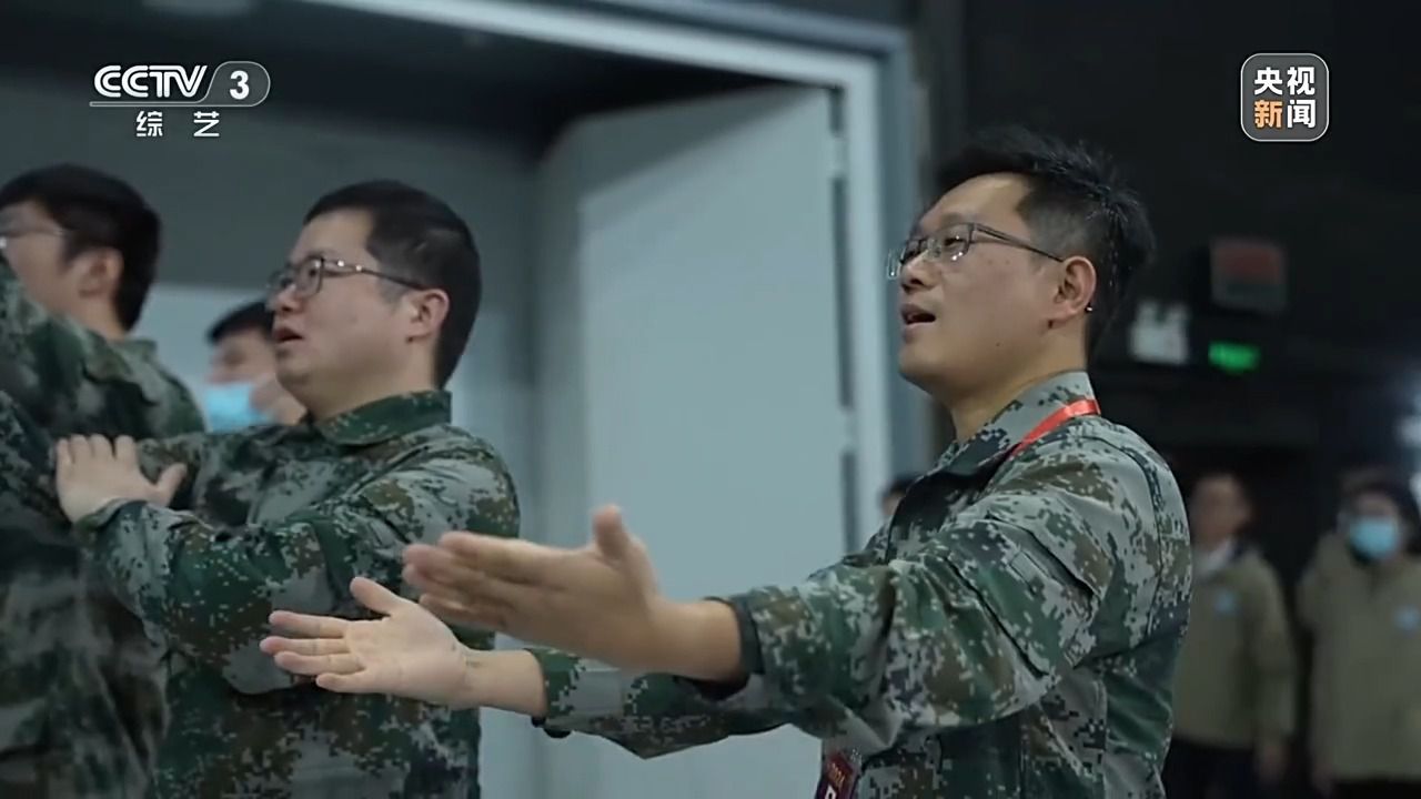南京理工大學(xué)機(jī)械工程學(xué)院火箭導(dǎo)彈發(fā)射工程系主任 任杰:你看我們穿的這個服裝跟國防是相關(guān)的,而且又是演的貝塔這個角色,都應(yīng)該為它去增添光彩。我們在走廊里面不在乎大家的目光,雖然文藝表演不是我們的專長,但是我們拿出真誠的態(tài)度,因?yàn)榛叵胄r候看動畫片多幸福,小時候蹦蹦跳跳唱的時候,要把情緒傳染給大家。